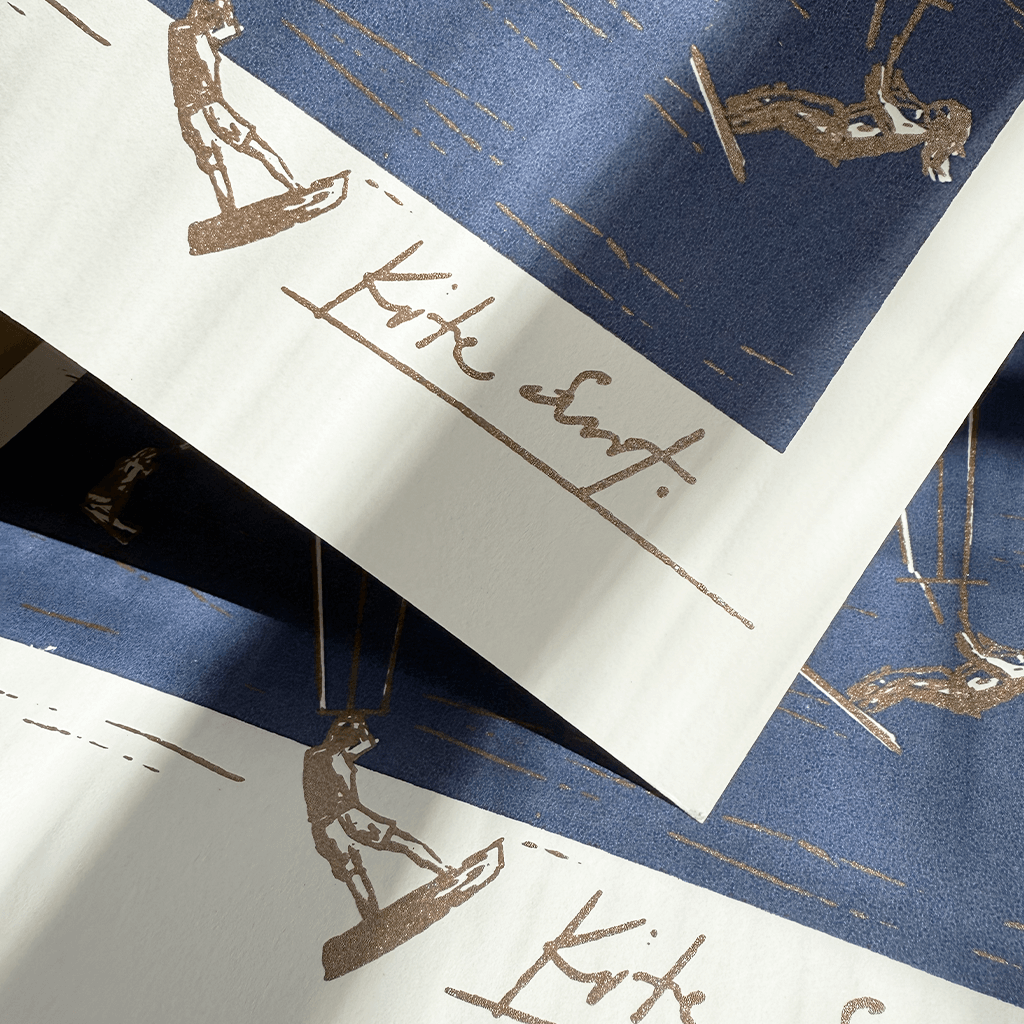 Plakat „Kite Surfer” to minimalistyczna grafika wykonana ręcznie metodą sitodruku w naszej Pracowni Witryna. To wyjątkowe połączenie prostoty formy, precyzyjnego rysunku oraz głębi kolorów uzyskanych dzięki tradycyjnemu, ręcznemu procesowi druku. Motyw przedstawia sylwetki kite surferów unoszących się nad falami, uchwyconych w dynamicznym ruchu i otwartych przestrzeniach. To praca, która oddaje wolność, energię wiatru oraz lekkość, jaką wielu miłośników sportów wodnych zna z własnego doświadczenia.