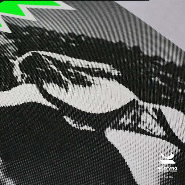 Plakat jest częścią serii plakatów pt. „Black/fluo prints”, gdzie po raz drugi udało nam się skrzyknąć 8 osób i stworzyć wspólnie serię sitodruków. Tym razem korzystaliśmy jedynie z koloru czarnego i zielonego fluoru, a pracę w większości bazowały na rastrze półtonowym lub czarnej kropce.